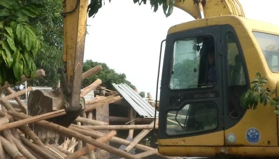 行动中,执法人员在现场拉起了警戒线,疏散附近群众,并出动大型挖掘机,采取逐点击破的方式,依法依规拆除了这两处猪舍和违建。由于准备工作到位,行动达到预期效果。