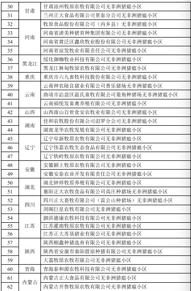 附:非洲猪瘟无疫小区名单