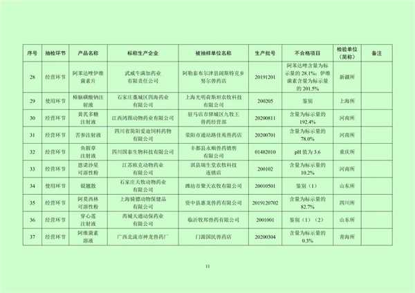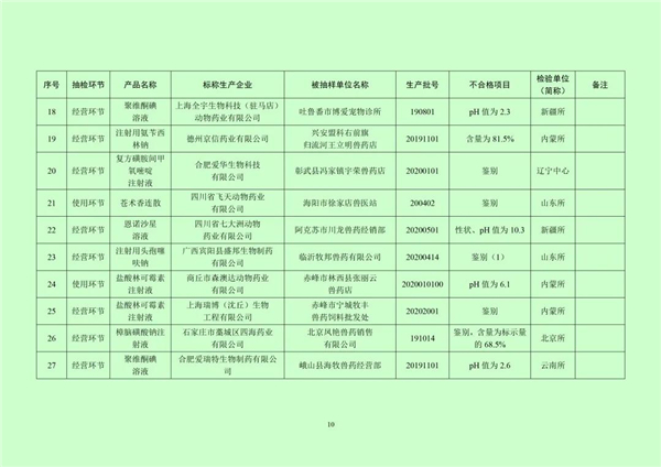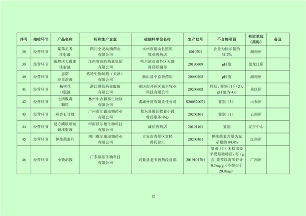农业农村部办公厅关于2021年第一期兽药质量监督抽检情况的通报