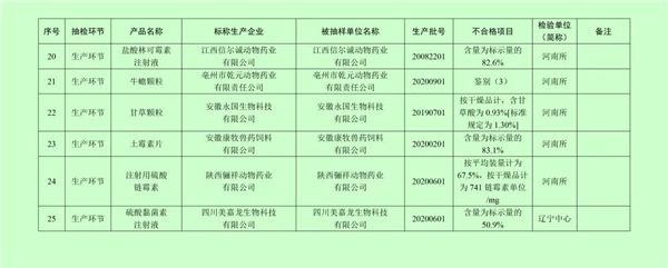 (三)河南盛利来天府动物药业有限公司(当期兽药质量通报的产品被检出违法添加其他药物成分)。