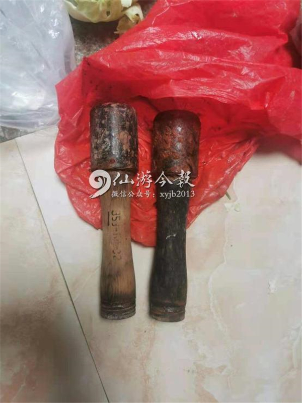 民警发现,这2枚手榴弹年代久远,因长期浸泡水中已腐蚀生锈,但保存完整,木质手柄的末端仍保持密封状态。其中一枚保存较好的手榴弹,上面还有数字编号。民警推测,这是军用制式型手榴弹,稳定性较强,虽然经历长时间的浸泡有所腐蚀,但遇到火星,仍有爆炸的可能。