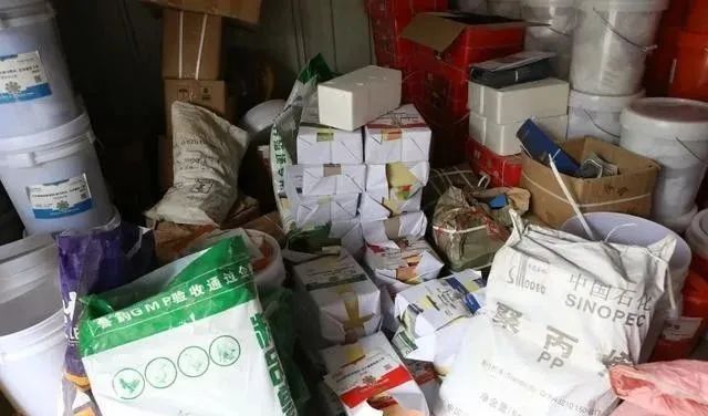 “我们打开仓库门之后,一股难闻的气味扑面而来,现场一片狼藉,仓库里满满的全是兽药,而且特别乱。地上到处是他们还没有装上药粉的包装袋,成品药品小山般堆积在地上,药粉遍地都是。”参与现场抓捕的侦查打击中心民警马云描述。