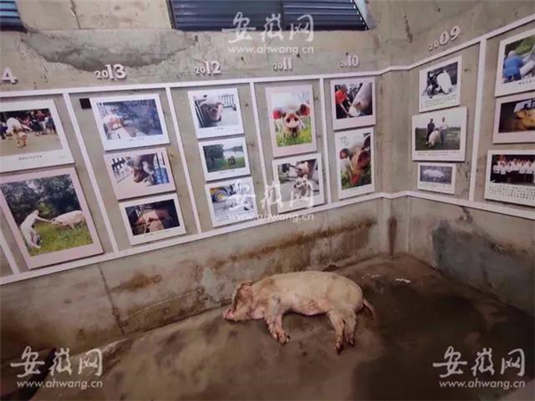 其实在今年四月,记者因为休假,就曾去参观过建川博物馆,也进入了“猪坚强之家”。这是一座水泥的拱形建筑,形似一只卡通猪,猪坚强就住在这里。据介绍,当时猪坚强就不能站立了,看上去很虚弱。有游客拿出相机拍照时,还会彼此提醒,不要开闪光点,尽量不打扰它。馆舍内也安装了摄像头,有专人在照顾它。围栏的墙壁上,贴满了当时它被营救,迁入新家,以及志愿者抱它的照片。“看这些照片还是感觉是挺温馨的,能看出大家都比较友善。”