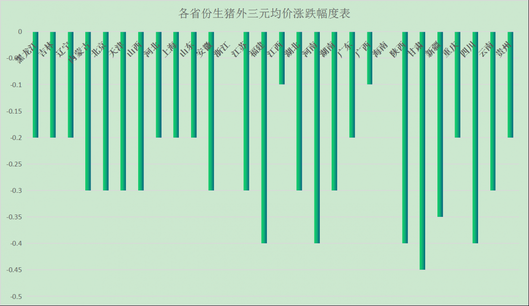 图为全国各省份涨跌幅度一览图 数据来源:猪易数据