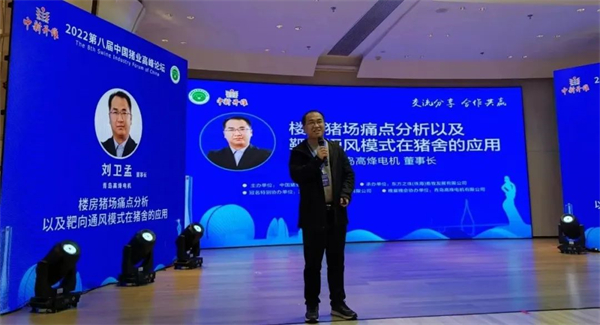 青岛高烽董事长刘卫孟先生的报告“楼房猪场痛点分析及靶向通风模式在猪舍的应用”,从楼房痛点分析、楼房猪舍解决措施两大方面做了介绍,对于楼房猪舍的痛点:物流运输,猪流上下,电梯安全问题,防水漏水(对比分析、漏水原因剖析-水泡粪、平刮),猪舍结构腐蚀问题,楼房猪舍成本高,环境承载力问题,夏季降温问题,节能问题等9方面做了详细分析,让大家对楼房猪舍有了更深入的了解,他提到对于“因为空气中废气的承载力有限,且楼房高,要求用除臭”这个楼房猪舍的痛点,靶向通风可以解决以上所有问题!