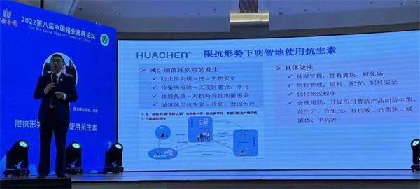 山东华辰药业技术服务总监匡宝晓博士分享的“限抗形势下明智地使用抗生素”报告,从养殖场的限抗、禁抗,抗生素的作用,耐药性产生与转移,限抗形势下明智地使用抗生素等四大方面做了详细分析。他提到抗生素是治疗养殖动物细菌性感染(包括继发感染)最准确、最便宜、最快速的工具,但要关注细菌的耐药性产生,细菌耐药性与滥用抗生素有关系,要明智使用抗生素,负责任地使用抗生素可以最大限度减少抗生素的浪费,减缓耐药性的产生。
