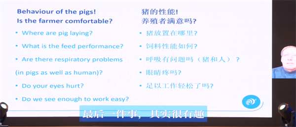 荷兰斯恩科国际营养首席技术总监Jan Cortenbach杨.登巴赫先生的报告“FNC荷兰农场咨询新技术”,分享了什么决定了气候,如何控制和检测这些因素,以及斯恩科多功能智能传感器荷兰猪场使用的情况。他提到热环境、空气质量、光源决定了气候变化,而热环境、空气质量、光源等与养猪生产息息相关,影响养猪生产,如果你不能衡量它,你就无法改进它,保持测量,以正确的方式进行测量,实际上是最重要的,荷兰斯恩科特别推出的【多功能传感器】可以实时同步检测并记录数据传输到手机,预警分析出报告!让您7天24小时实时监控猪舍情况。
