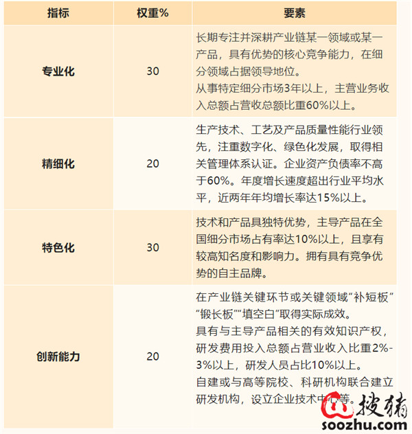 2、企业从事特定细分市场3年以上,具有在某一个细分专业赛道上的特色产品、特色服务、特别模式,且发展潜力巨大,呈现高成长性。年营业收入3000万以上,研发费用总额占总收入比重2%-3%以上,且近二年年均增长率达15%以上。