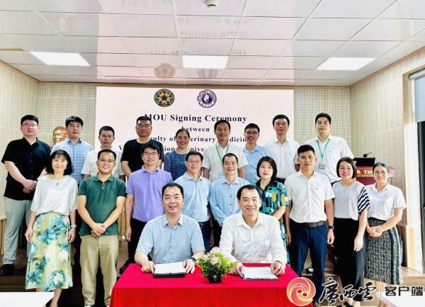 赵云翔代表广西大学动物科学技术学院与越南国家畜牧研究所签订备忘录。