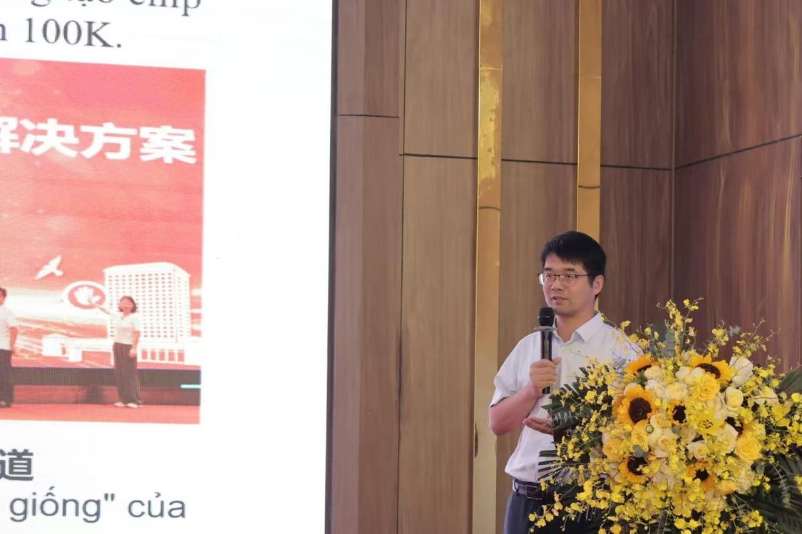 广西扬翔集团股份有限公司育种研究中心总监、广西大学教授赵云翔分享了中国养猪业育种及繁殖技术进展与应用情况。同时分享介绍中国广西与越南相似的猪肉饮食文化和相似养殖气候特点,以及共同面临非洲猪瘟防控、环境管理等挑战,具有天然的协同合作基础,倡议双方定期开展猪业领域交流活动,构建产业联合、创新研发、技术推广的全域赋能体系,助力越南养猪产业向数智化管理体系转型。