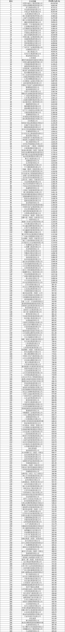 “2025中国制造业企业500强”名单如下: