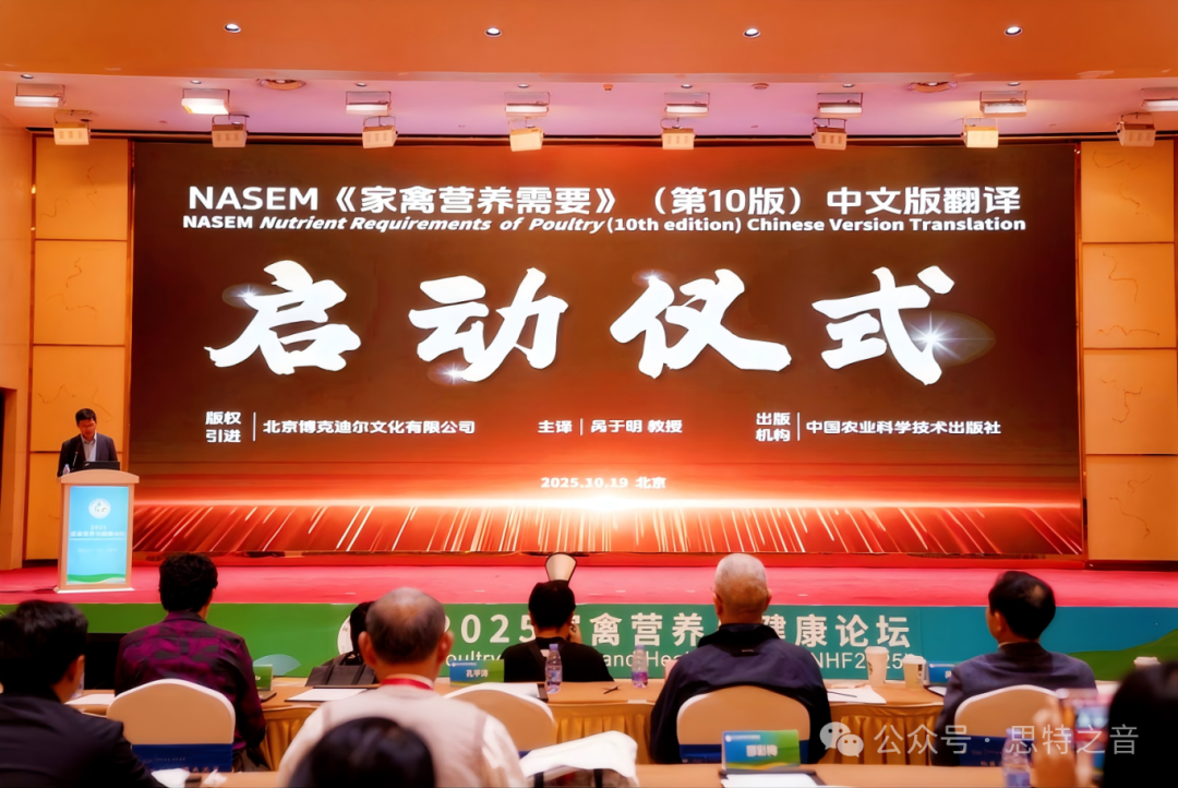 10月19日下午18:20,在“2025家禽营养与健康论坛”收官环节,NASEM《家禽营养需要》(第10版)中文翻译工作启动仪式”精彩开启!