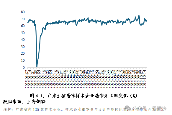 2025年9月至10月上旬,广东省生猪屠宰样本企业开工率呈现“9月波动上升、10月价格震荡”的动态特征,紧密契合市场供需与消费趋势变化。