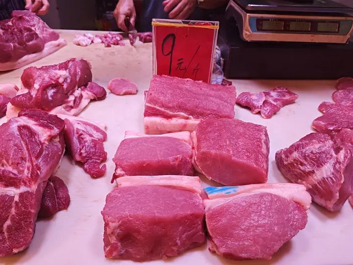 在淡村农贸市场一些独立店铺的猪肉摊,有的摊位打出猪肉9元/斤招牌。“今年还没买过这么便宜的猪肉,今天特地多买点包饺子。”猪肉摊前,市民张女士捏着刚称好的肉告诉记者。