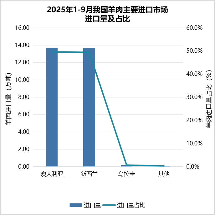 4.羊肉进口增加。1—9月,进口羊肉27.6万吨,同比增0.1%;进口额10.6亿美元,同比增23.6%。进口主要来自新西兰、澳大利亚和乌拉圭,分别占进口总量的49.6%、49.4%和0.7%,合计占99.7%。其中,从澳大利亚进口同比增4.6%,从新西兰和乌拉圭进口分别同比降1.7%和56.2%。
