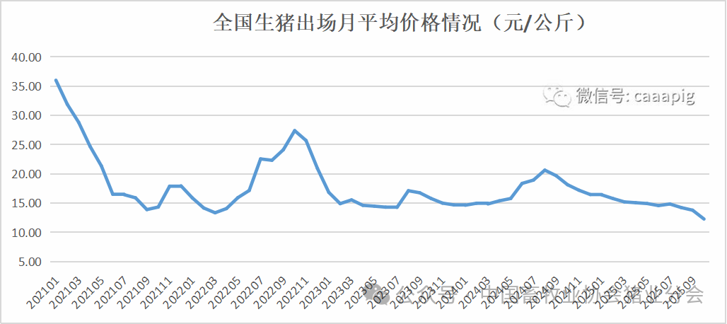 3、2025年10月份全国生猪出场价格12.27元/公斤,环比下跌11.0%,同比下跌32.4%。