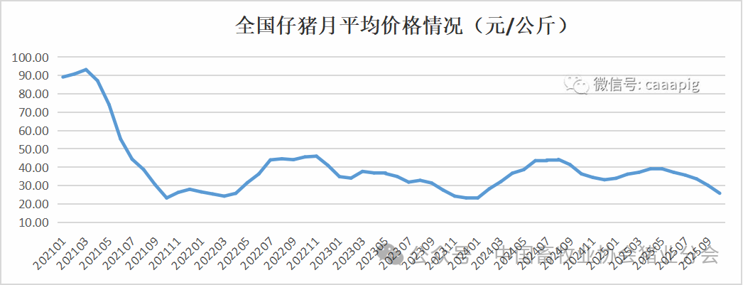 2、2025年10月份全国仔猪价格25.80元/公斤,环比下跌14.2%,同比下跌29.1%。