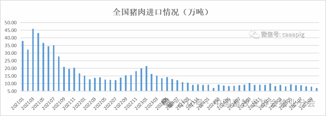 1、2025年10月进口猪肉7.11万吨,环比下降11.1%,同比下降21.1%。