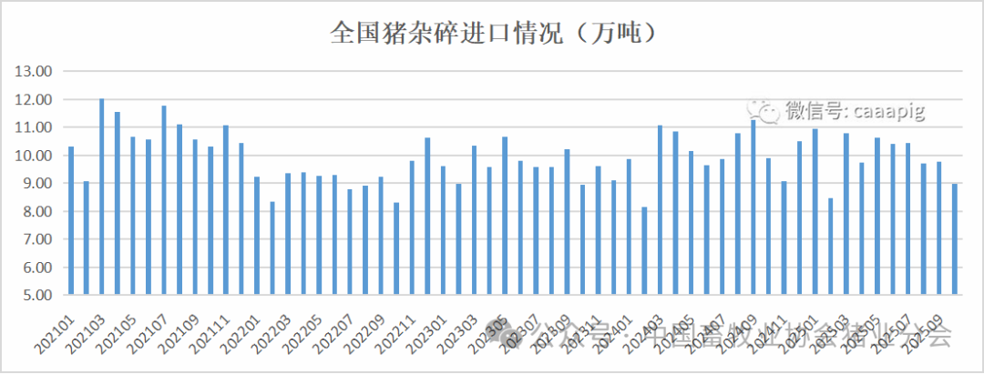 2、2025年10月进口猪杂碎8.99万吨,环比下降7.8%,同比下降9.1%。