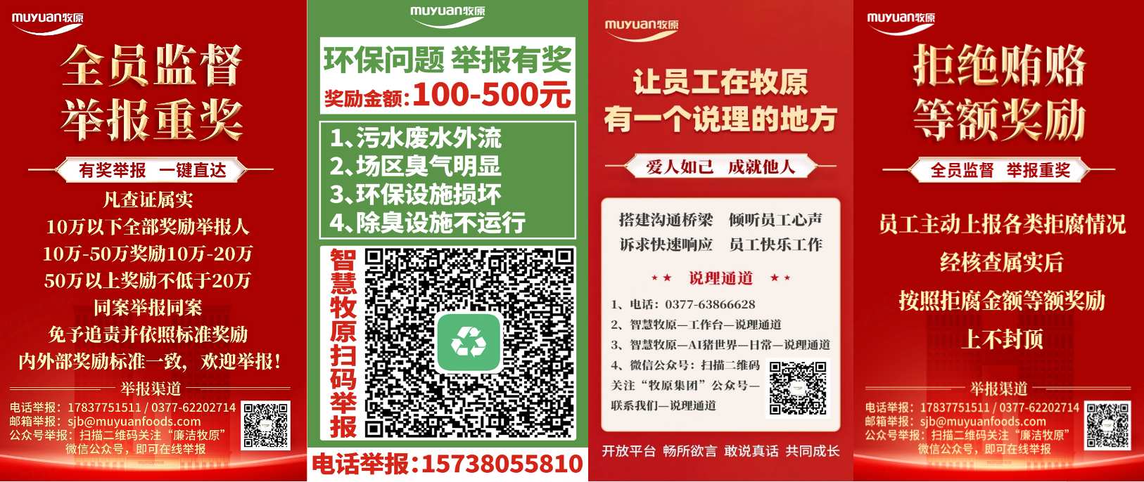 同时,牧原构建“全员举报、重奖举报”机制,打通涵盖腐败、管理、环保、造假等全方位举报通道,并实行内外部举报奖励标准一致、同案举报同奖的奖励机制。