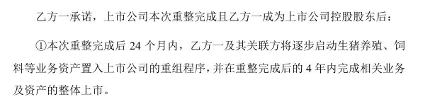 根据正邦科技公告,“双胞胎”承诺:“双胞胎”及关联方在重整完成后的24个月内启动资产注入计划;“双胞胎”及关联方将于取得上市公司控制权后的2年内,启动业务/资产注入上市公司的法定程序。