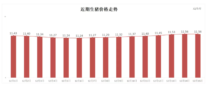 价格监测情况显示,12月15日,全国生猪均价为11.56元/公斤,较昨日持平。重庆市肉品供给指数显示,今日肉品供给比昨日上涨4.33%。北京市白条猪批发交易量为61.27万公斤,较昨日上涨5.20%。