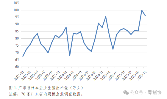 随着行业门槛提高和市场波动加剧,生猪养殖正加速向头部企业集中。根据调研数据,全省17家大型养殖企业合计出栏量已占全省总产量的53%,温氏、广垦、京基智农等成为产业中坚力量。这一趋势在样本企业数据中得到直观体现。尽管2025年市场面临波动,但70家规模样本企业的出栏量不降反升,2025年1-11月合计出栏944.36万头,已超过去年同期的884.94万头,尤其在年末呈现放量增长态势(如2025年10月出栏99.78万头,远高于2024年同期的90.67万头)。这表明,在散户退出的背景下,规模化企业正凭借其成本、技术和资金优势填补市场空缺,进一步巩固其市场主导地位。
