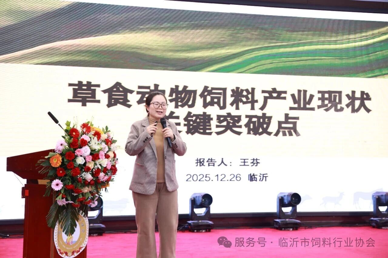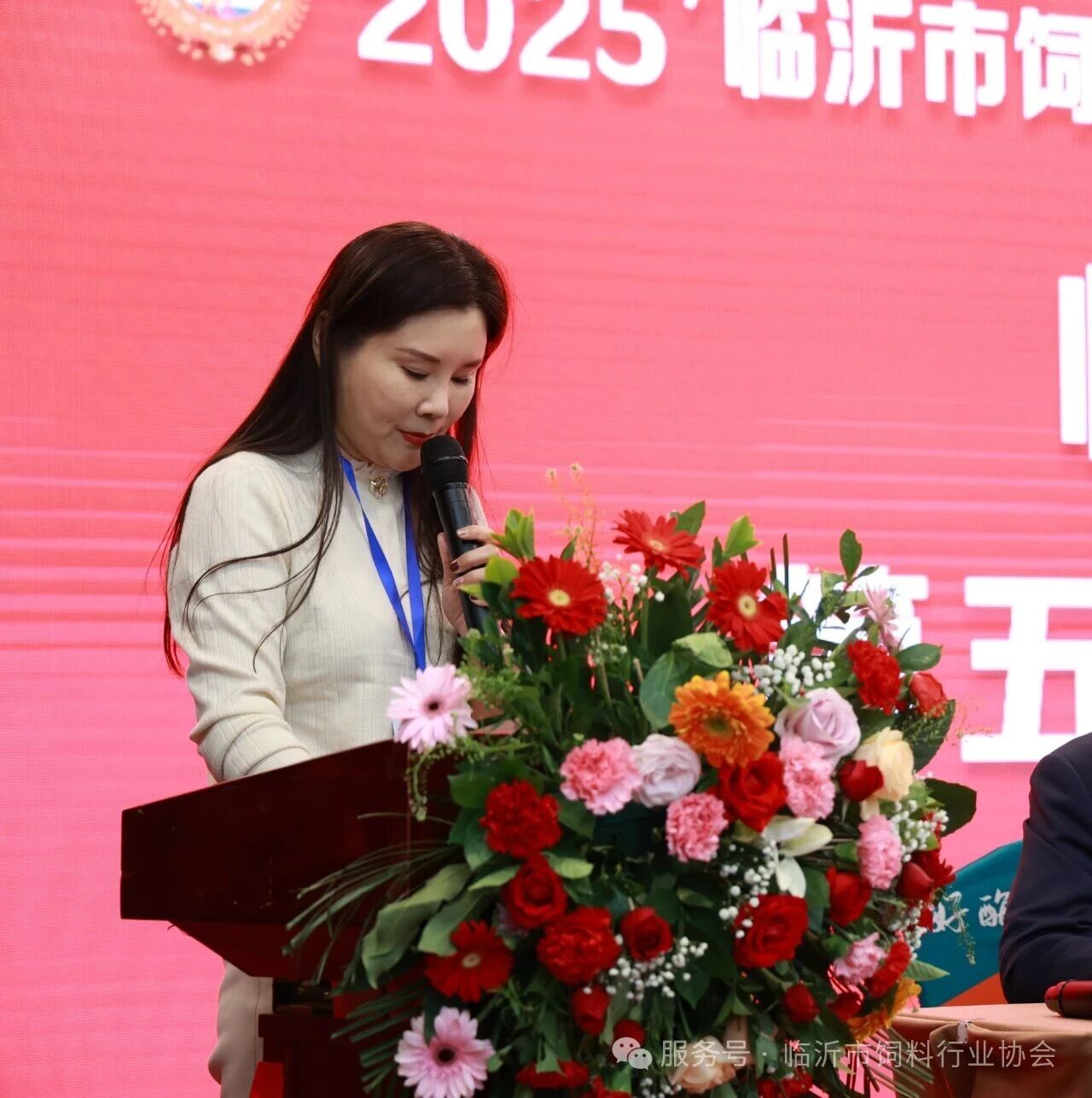 由临沂市饲料行业协会会长马书珍代表第五届理事会做2025年协会工作报告。