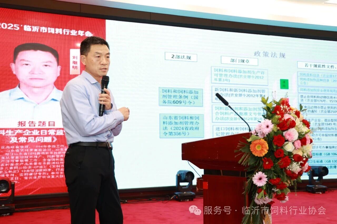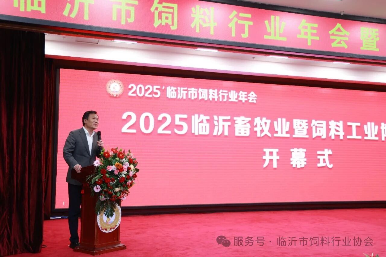 2025年12月25日13:00,由山东省畜牧兽医局、临沂市农业农村局、临沂市委社会工作部、临沂市民政局、临沂市畜牧发展促进中心、临沂沂河新区社会发展局、山东省饲料行业协会支持,临沂市饲料行业协会主办,山西北正农生物工程有限公司协办的2025´临沂市饲料行业年会在临沂宾馆(开发区店)隆重开幕。山东省饲料兽药质量检验中心副主任刘继明,山东省畜牧兽医局派驻省政务中心负责人杨志强,市农业农村局党组成员、临沂市农业科学院党委书记张谦,临沂市畜牧发展促进中心副主任闫永健,临沂沂河新区社会发展局四级高管高尚,市畜牧发展促进中心饲料兽药科科长袁国栋,中国饲料工业协会副会长于娟,山东省饲料行业协会秘书长李相树等领导到会指导,各县区畜牧发展促进中心分管领导及饲料兽药发展科负责人、各地市饲料协会会长、秘书长以及本地集团企业总裁应邀出席,业内媒体、行业知名专家及全市300多家饲料企业的会员代表共计三百余人参加会议。