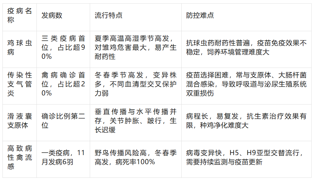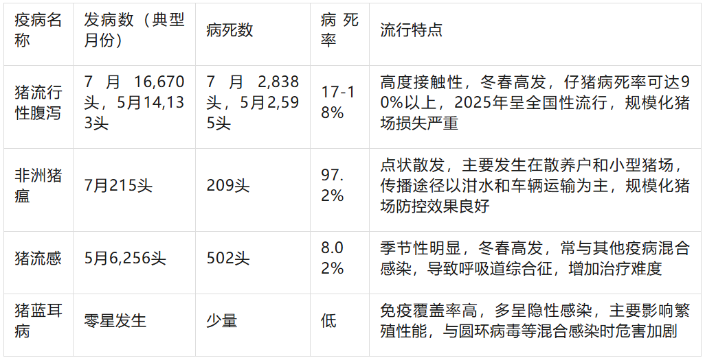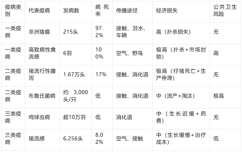 主要动物疫病关键指标对比(2025年典型数据)
