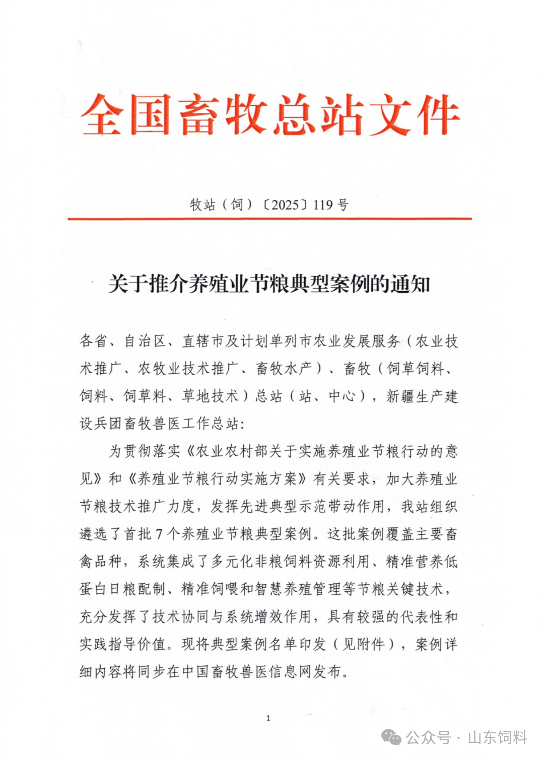 近日,全国畜牧总站发布了《关于推介养殖业节粮典型案例的通知》,公示了首批7个养殖业节粮典型案例。这批案例覆盖主要畜禽品种,系统集成了多元化非粮饲料资源利用、精准营养低蛋白日粮配制、精准饲喂和智慧养殖管理等节粮关键技术,充分发挥了技术协同与系统增效作用,具有较强的代表性和实践指导价值。