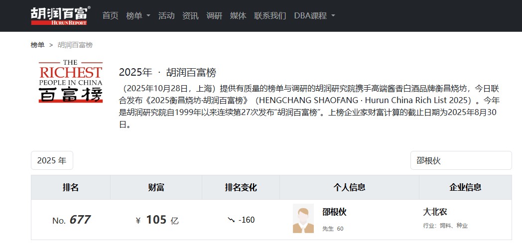 图片来源:胡润百富榜对此,大北农表示,邵根伙持有的公司股份将按照法律、法规办理相关手续,公司将及时履行信息披露义务。