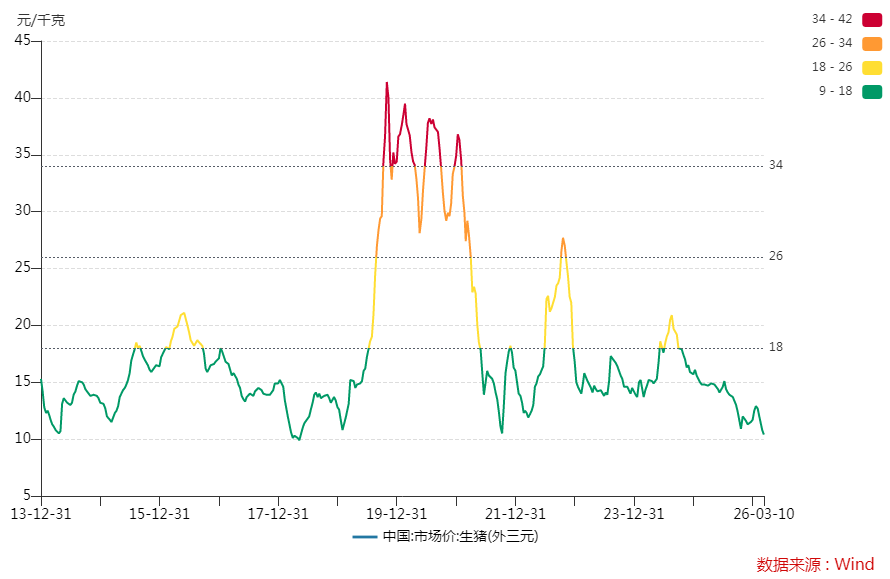 仅以最具成本优势的头部企业为例,牧原股份近期在投资者互动平台表示“由于2月份存在春节假期,有效销售天数少、销售数量低,因此单位期间费用分摊增加。公司2026年1-2月的平均生猪养殖成本在12元/kg左右。”
