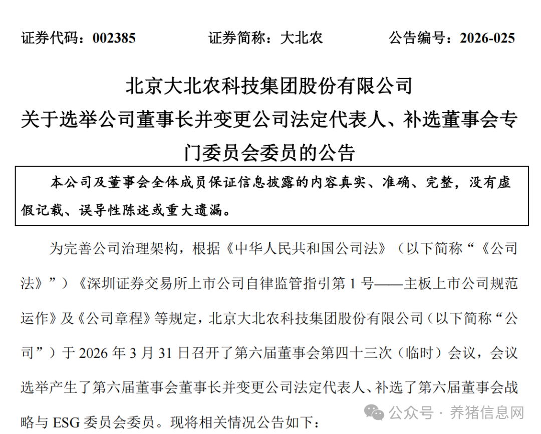 3月31日,大北农发布公告完成管理层重要调整,莫云女士正式出任公司董事长兼法定代表人,成为这家农牧科技企业的新任掌舵人。