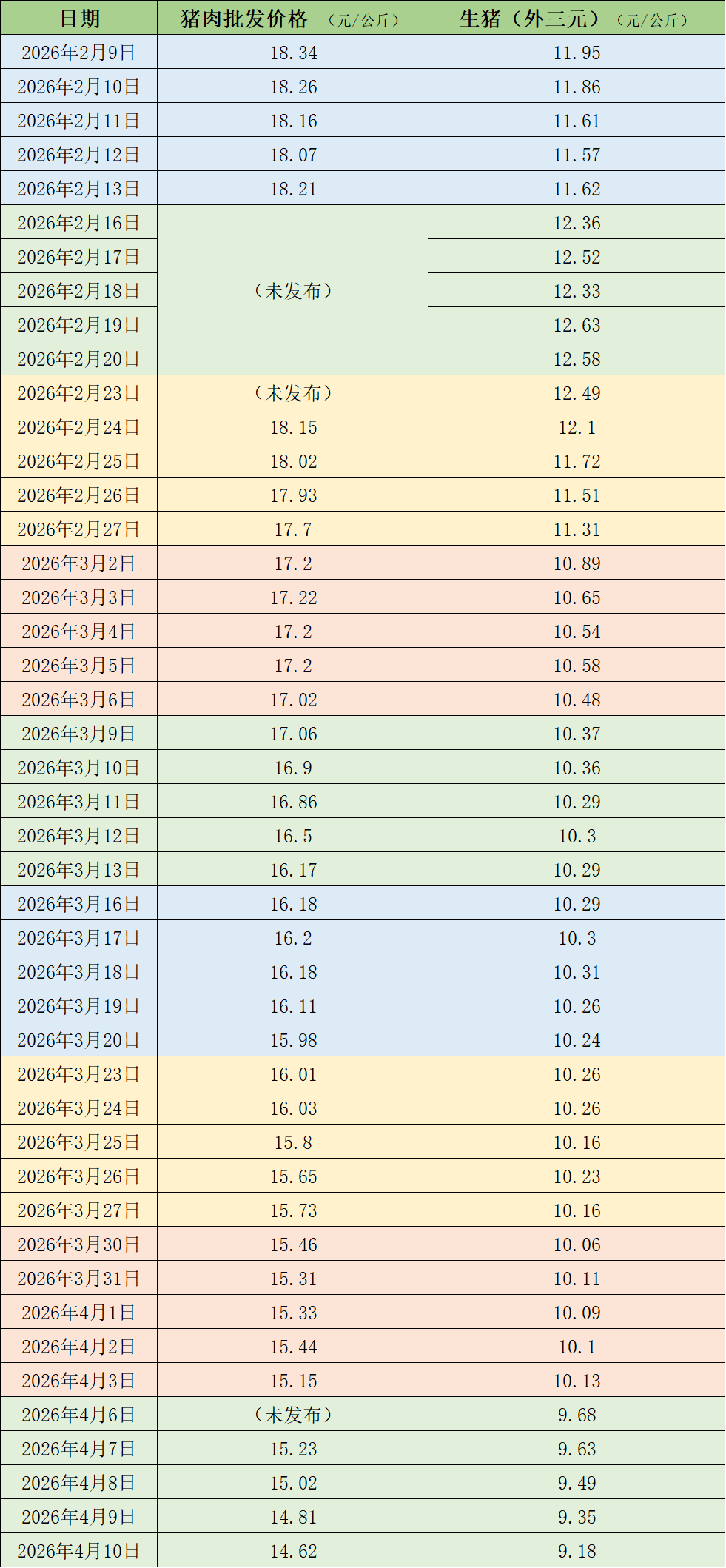 据农业农村部监测,4月10日,全国农产品批发市场猪肉平均价格为14.62元/公斤,与上周五(4月3日)的15.15元/公斤相比,下降3.5%。本周的平均价格为14.92元/公斤,与上周15.34元/公斤的均价相比,下降2.7%。