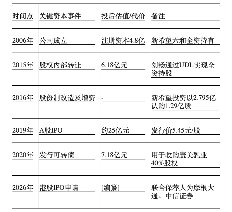 随后的几年,新乳业完成了一系列关键的资本重组。2011年,新希望六和将其乳业资产转让至南方希望;2015年,南方希望又将新乳业以6.2亿元转让给Universal Dairy Limited(UDL),而该平台由刘畅全资持有。