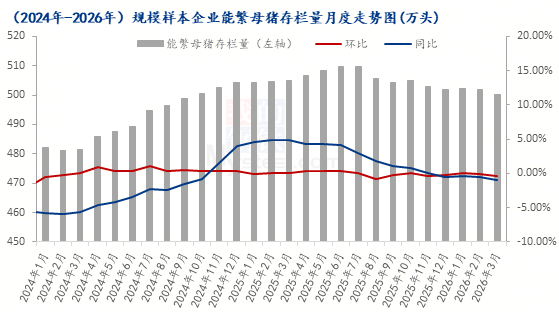 据Mysteel农产品监测的208家中的123家规模养殖场最新数据显示,3月份国内能繁母猪存栏量环比微降0.35%,同比跌幅0.90%。东北、西北大区相对稳定,其他大区呈现微降调整趋势。