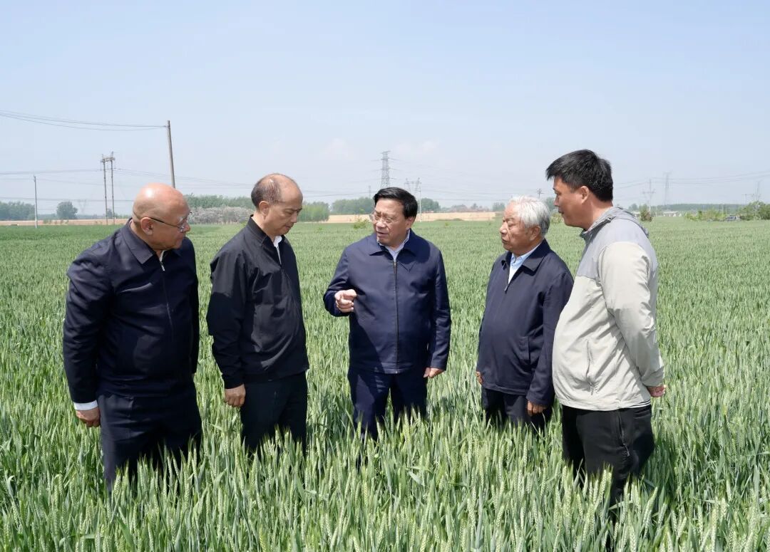 在郑州市新郑市新村镇水泉村,韩俊走进田间察看小麦苗情长势。小麦专家、河南农业大学教授郭天财介绍,当前小麦陆续抽穗扬花,长势整体良好,已基本追回晚播影响。韩俊强调,要不误农时精细抓好春管春耕,一个环节一个环节抓实田管措施,加强农资供应和农机作业服务,聚焦倒伏、赤霉病等风险,指导农民精准运筹肥水,及时开展病虫防治。要高质量推进高标准农田建设,下大力气整治突出问题,健全长效管护机制,强化良田良种良机良法集成增效,促进大面积单产提升,夯实粮食安全根基。