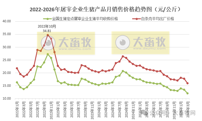 在2022-2026年这5年同期相比,2026年1-3月白条肉出厂价格均低于前4年同期。