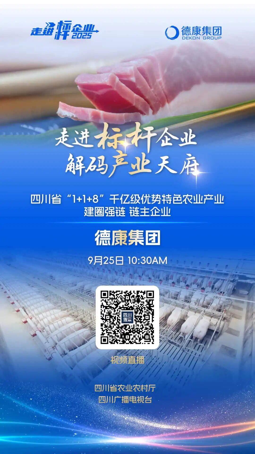 9月25日,由四川省农业农村厅、四川广播电视台联合推出的《走进标杆企业》第三季《走进标杆企业解码产业天府》,将走进德康集团,探寻企业以“全产业链可控协同”服务“世界餐桌”的发展故事。