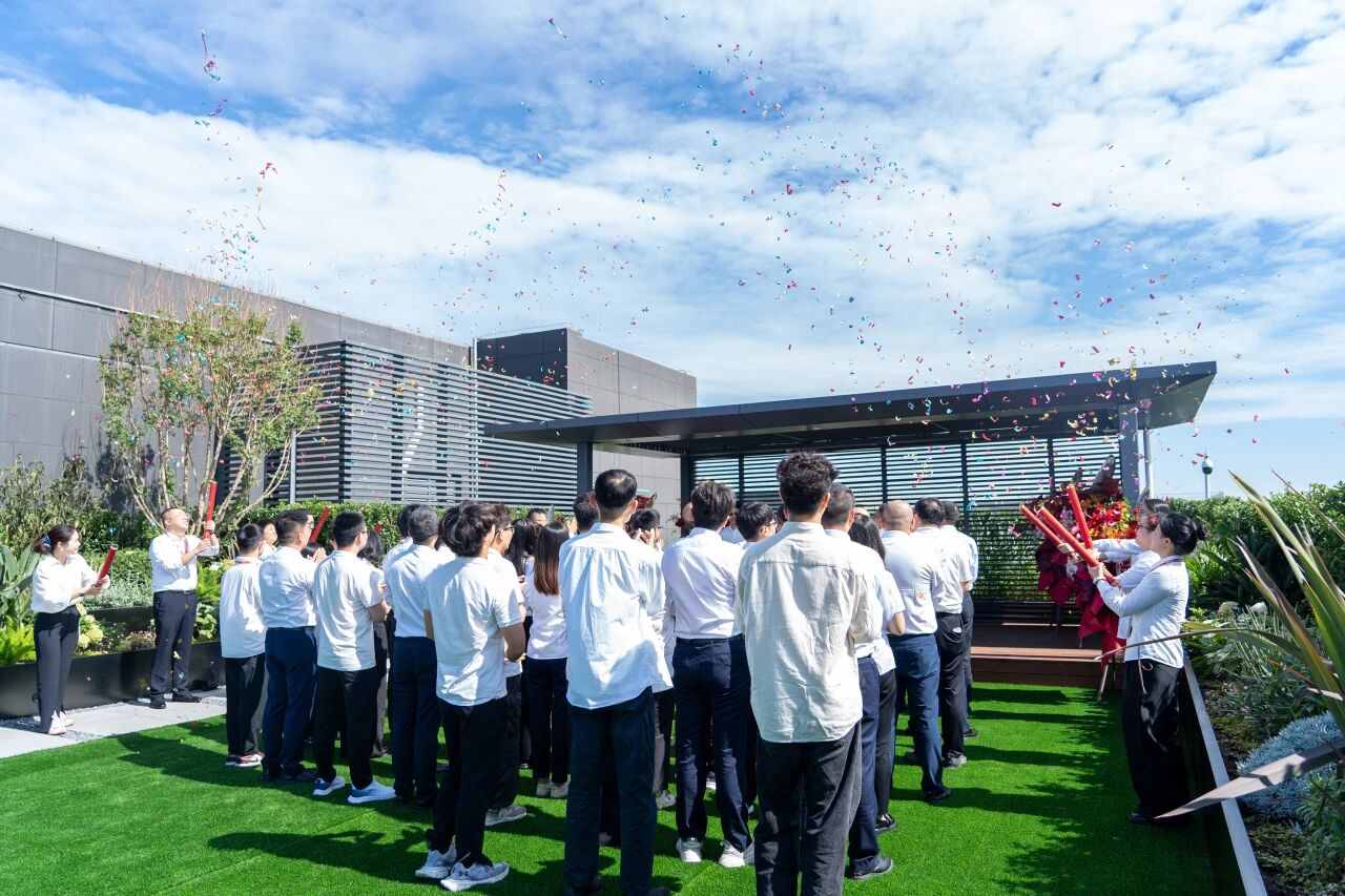 11点18分,仪式现场迎来首个高潮。伴随着铿锵有力、整齐划一的10秒倒计时,五彩礼花在电梯厅绚烂绽放,热烈的掌声与欢呼瞬间响彻整个楼层。在集团董事长王德根带领下,乔迁员工们一起满怀喜悦地步入崭新的办公区。这一刻,不仅是一扇新门的开启,更象征着一个新起点的正式启航,喜悦与激动洋溢在每个人的脸上。