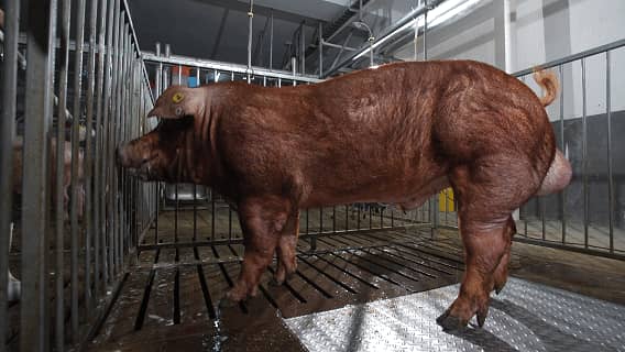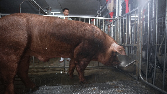 推开猪舍的门,万众期待的扬翔杜洛克种公猪终于出现在眼前。它们身形健硕,毛发油亮,一举一动都透着“冠军风范”,健康、强壮,代表着育种科学的前沿水平。此刻,之前所有的奔波与繁琐,都在见到它们的那一刻变得无比值得。