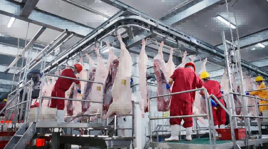车间内,超声波胴体自动分级检测仪、RFID系统精准运行,二氧化碳致昏机、全自动劈半机器人等国际先进设备协同作业,从屠宰到分割流程自动化把控,不仅大幅提升了屠宰效率,更保障了猪肉肉质鲜嫩。