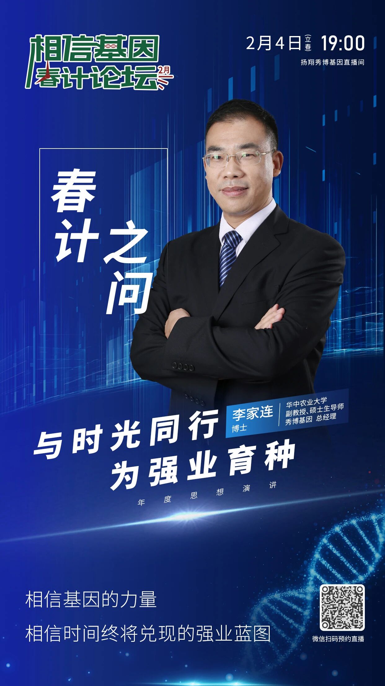 2月4日,秀博基因2026年度思想演讲《相信基因·春计论坛》重磅来袭,以“春计之问:与时光同行,为强业育种”为核心思想,邀行业同仁共赴这场种业振兴的春日之约。当基因的力量被充分释放,当技术创新与产业实践深度融合,农业现代化的未来将无限光明。
