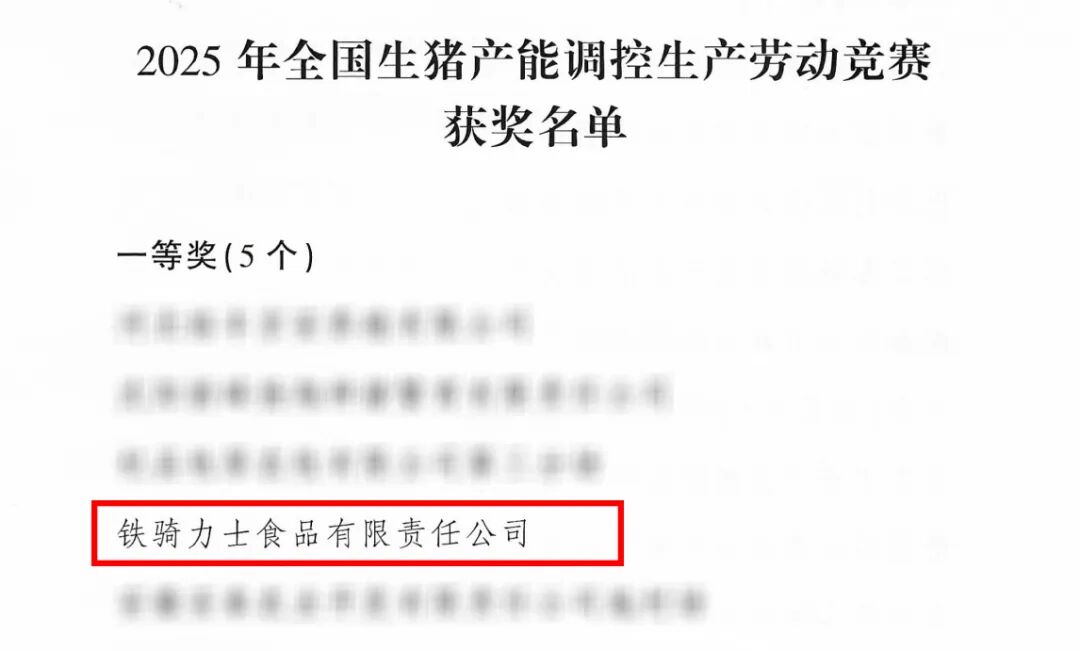 近日,农业农村部畜牧兽医局、中国农林水利气象工会联合发布了“2025年全国生猪产能调控生产劳动竞赛“评选结果。铁骑力士食品有限责任公司凭借其在生猪产能调控领域的创新实践,荣获2025年全国生猪产能调控生产劳动竞赛一等奖。