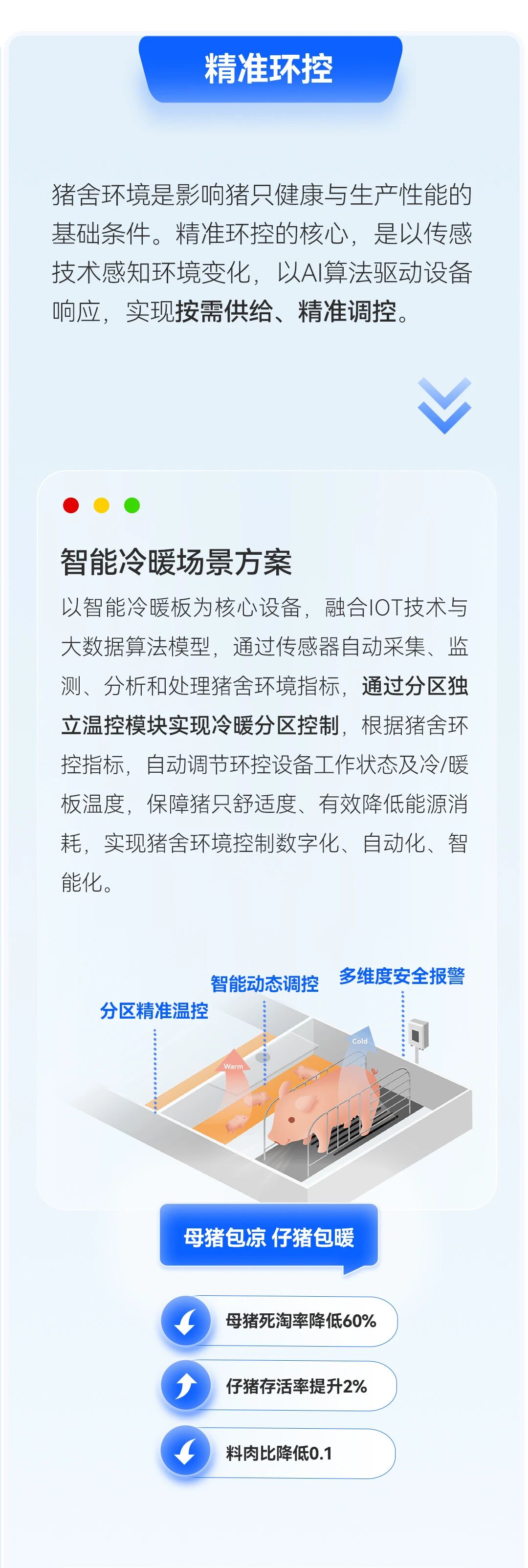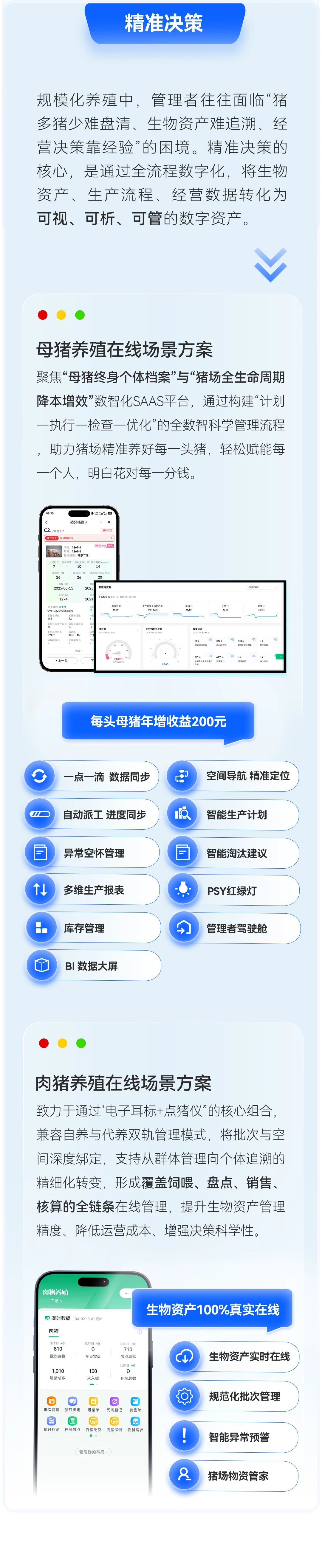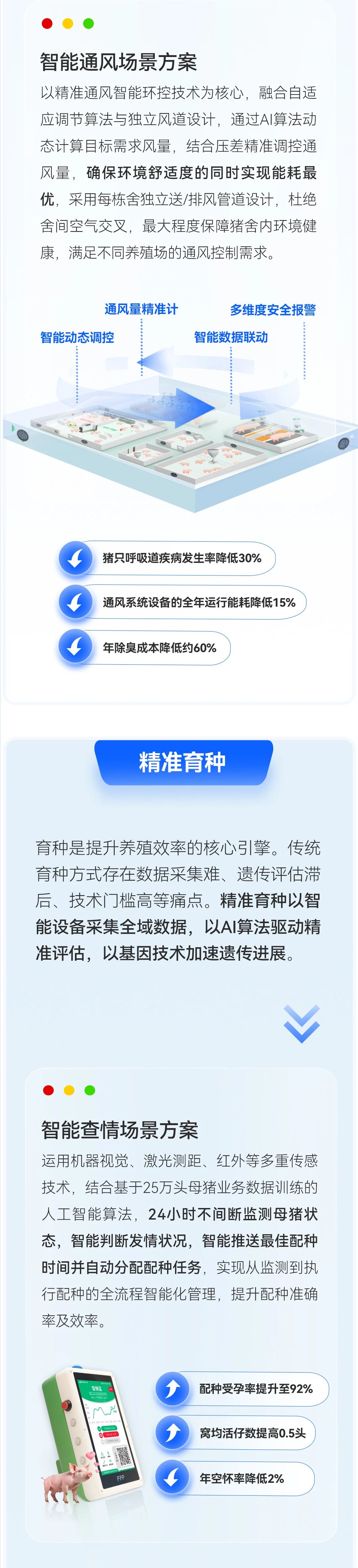 正是基于这份技术积累与服务体量,我们从真实业务场景中不断总结、提炼,迭代出了覆盖猪场全链路5大精准领域和11大场景解决方案。
