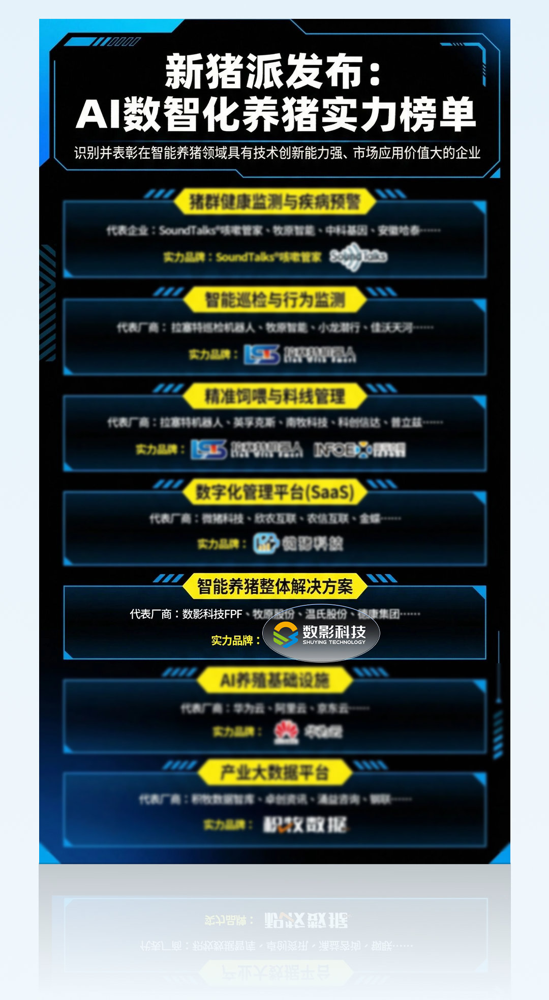 2026年4月1日,新猪派重磅发布《AI数智化养猪实力榜单》。该榜单从技术能力、落地案例、真实场景、效果数据、企业规模等多维度出发,对行业中应用较为广泛的智能化养殖场景及主流厂商进行了系统调研与盘点。数影科技登榜智能养猪整体解决方案核心赛道,成为唯一上榜的实力品牌。这一殊荣的背后,是数影科技FPF全链路一体化解决方案的硬核实力,更是其历经全球规模化验证、持续落地应用的成果印证。