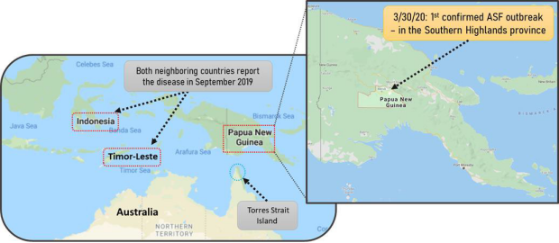 由于距离巴布新几内亚非常近,澳大利亚已经加强了边境和农场生物安全措施,以防止ASF传播至澳大利亚。