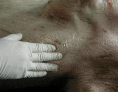再将气管剖开,是否有大量泡沫,如有,可能是胸膜肺炎。