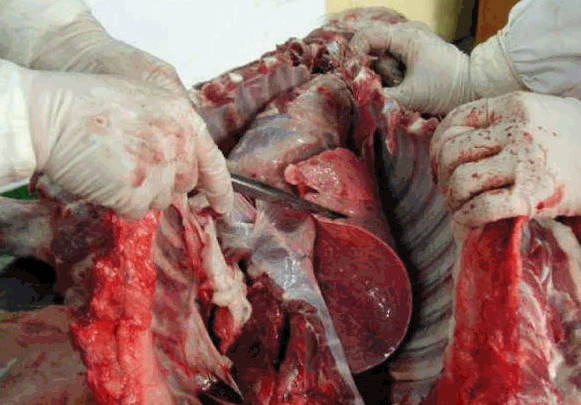 3.剖检过程中要注意个人的防护,剖检人员必须带手套,防止手划伤感染。